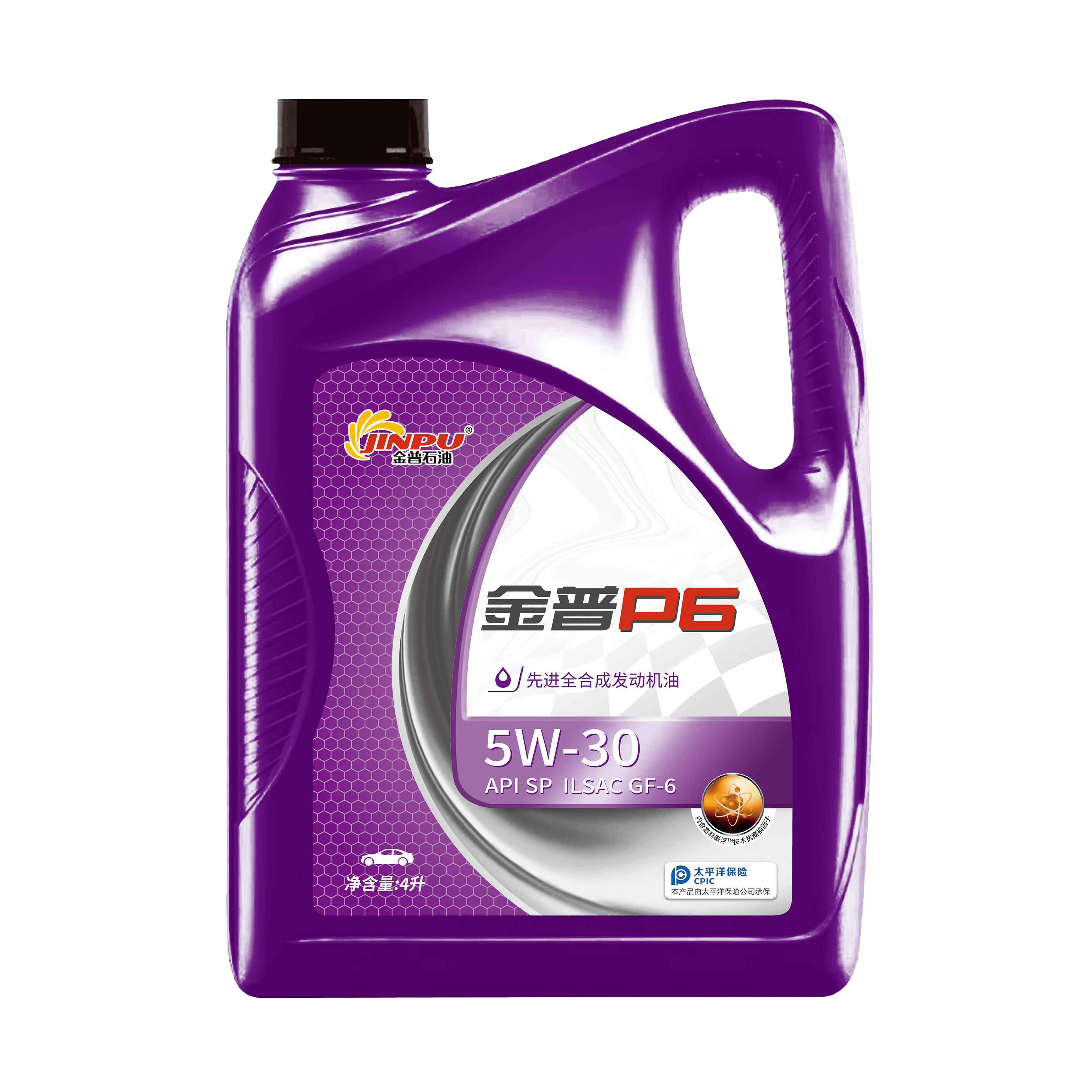 金普P6先进全合成发动机油采用先进的全合成基础油及雅富顿添加剂调和而成,并添加含有金普科技集团发明专利高科磁浮技术抗磨修复因子,具有更高的抗氧化性、更好的黏温性、更好的低温流动性以及更优良的剪切稳定性、抗磨性。可帮助提高发动机效率并延长发动机寿命。
